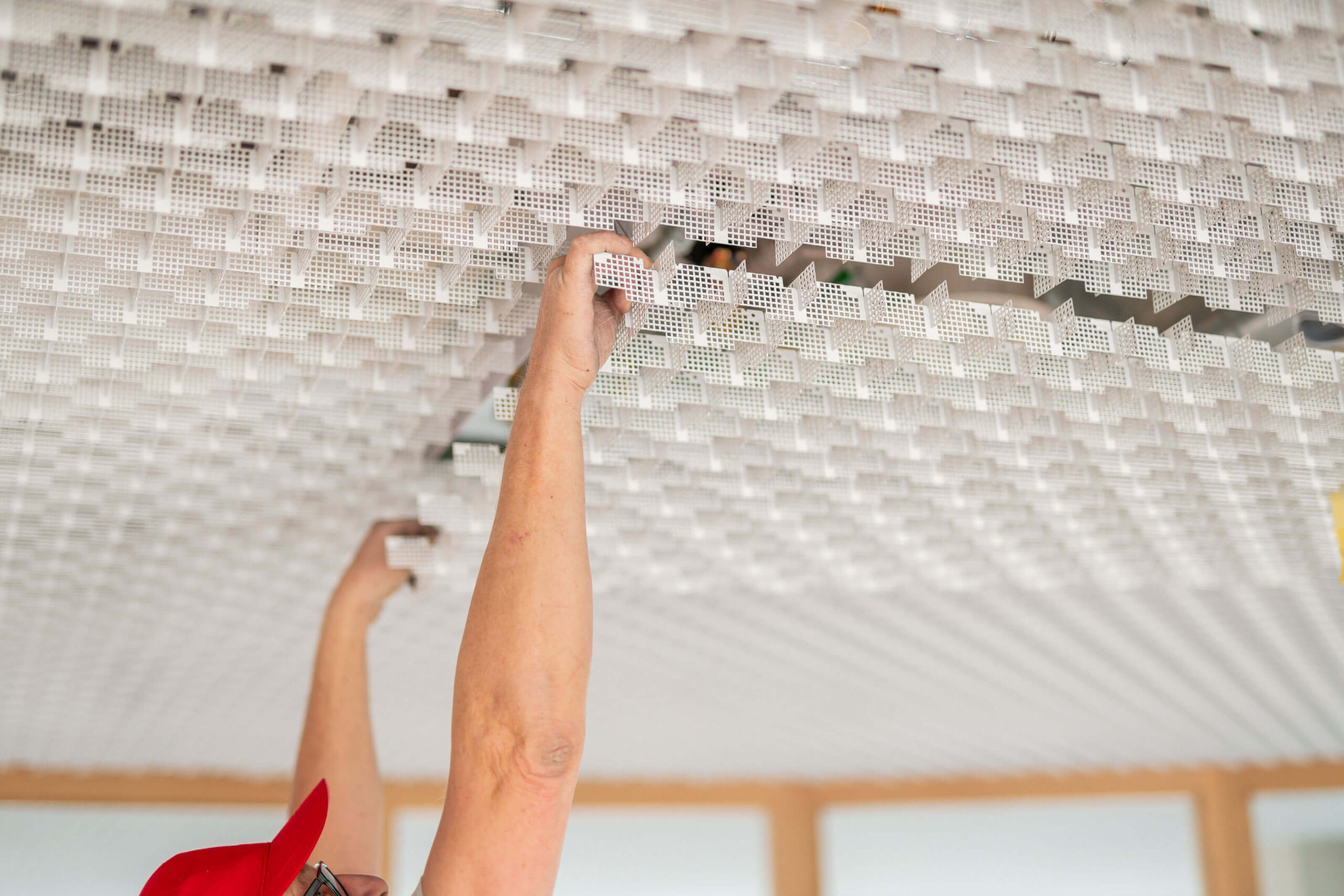 Ein versiertes Montageunternehmen wie wir von Deweta analysiert sowohl bei bestehenden Räumen wie auch bei Neubauten immer zuerst die Ausgangslage. Muss die bestehende Haustechnik wie Kühlung, Lüftung, Licht und Verkabelung bei der Montage der Akustikdecke berücksichtigt werden? Muss die Technik leicht zugänglich sein? Sind Dachfenster zu integrieren? Was ist mit Indoor-Schattensystemen, die bei starker Besonnung eingesetzt werden und was haben diese für eine Wirkung auf das Akustikverhalten? Wie schnell soll eine Akustikdecke entfernt werden können? Kann dies allenfalls auch ein IT-Techniker selber machen, der mal schnell ein neues Netzwerkkabel für die Installation eines neuen WLAN-Routers installieren muss? All diese Fragen zu den Einflussfaktoren stehen bei uns auf einer Checkliste, die wir mit Innenarchitekt und Bauherrschaft durchgehen. Das Resultat wird so hör- und spürbar besser – und lässt sich sehen.