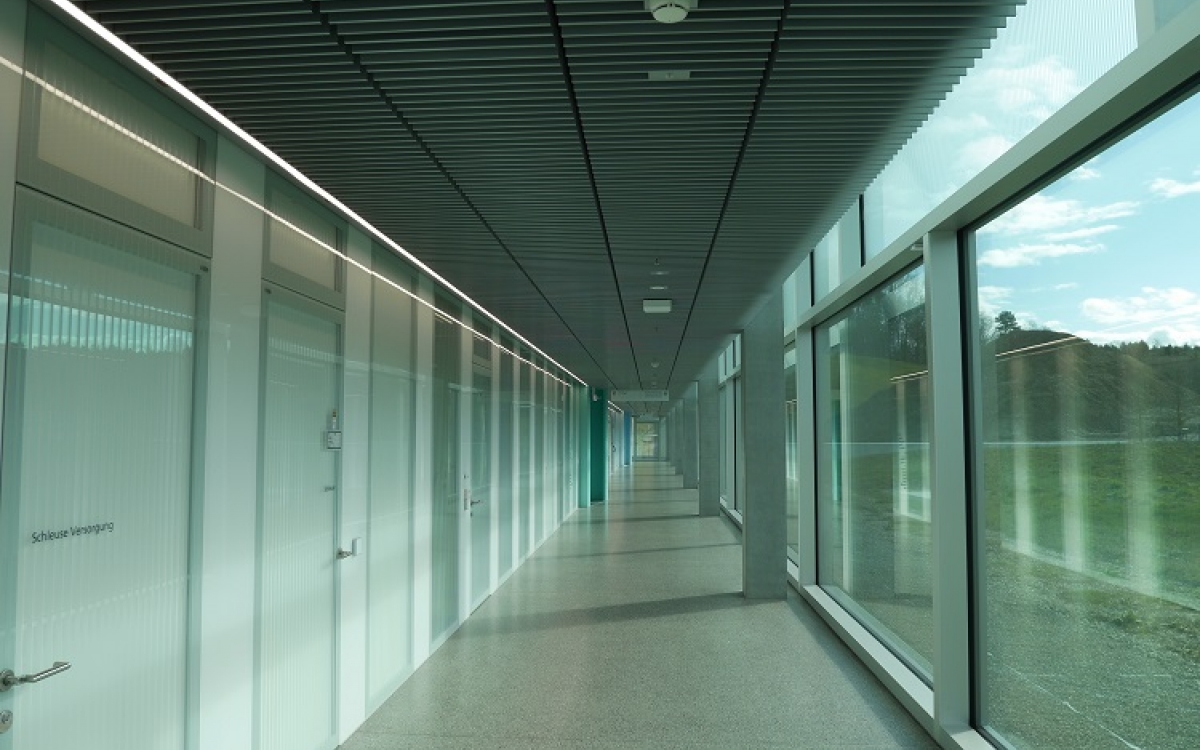 Das neue Spital sollte sich als moderne und offene Institution repräsentieren, in welcher sich Patienten und Besucher wohlfühlen. Hier wurde von der Bauherrschaft und den Architekten eine Deckenlösung vorgegeben, die den Korridoren eine Richtung und eine Struktur gibt. Es waren viele technische Anforderungen einzuhalten, sowohl beim Brandschutz wie auch bei der Raumakustik.